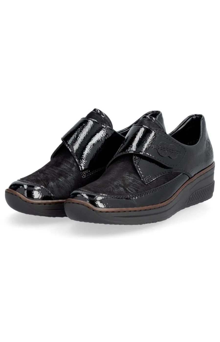These Rieker Shoes are perfect for a classic look with some personality. The platform sole ensures you will be comfortable all day in these, while giving you some extra height. They velcro strap makes taking these shoes on and off effortless. They have a leather upper and lining whilst also having Riekers classic antistress footbed. Our Rieker shoes are excellent quality, very comfortable and are a generous, standard fit. Wear them with and every style in between.